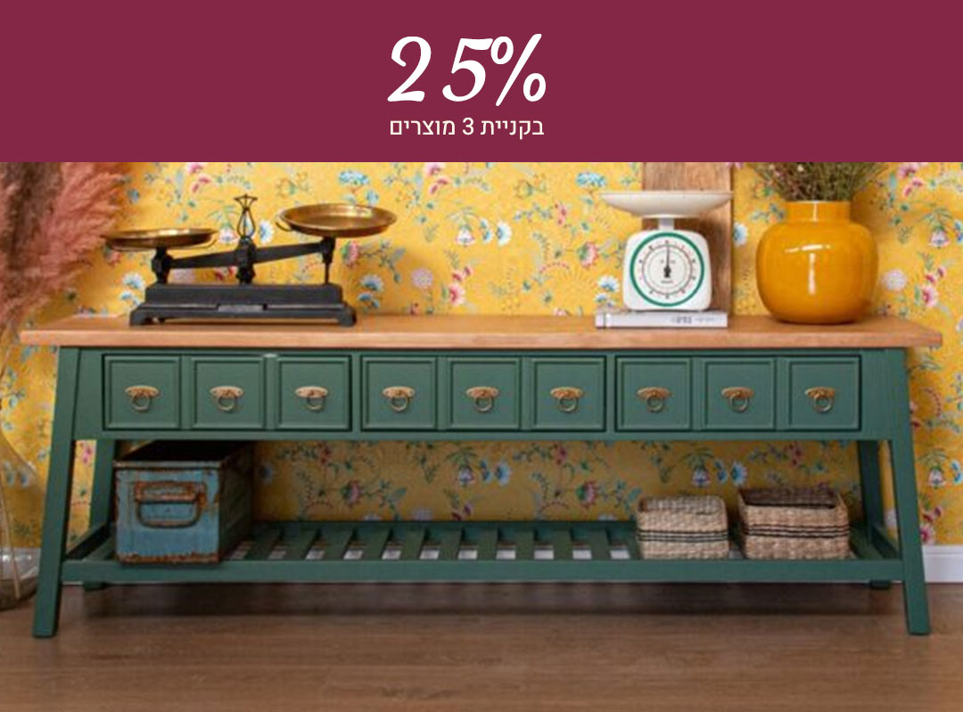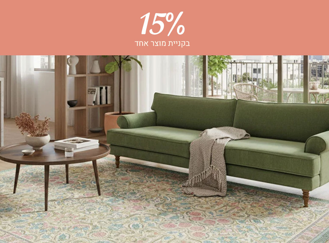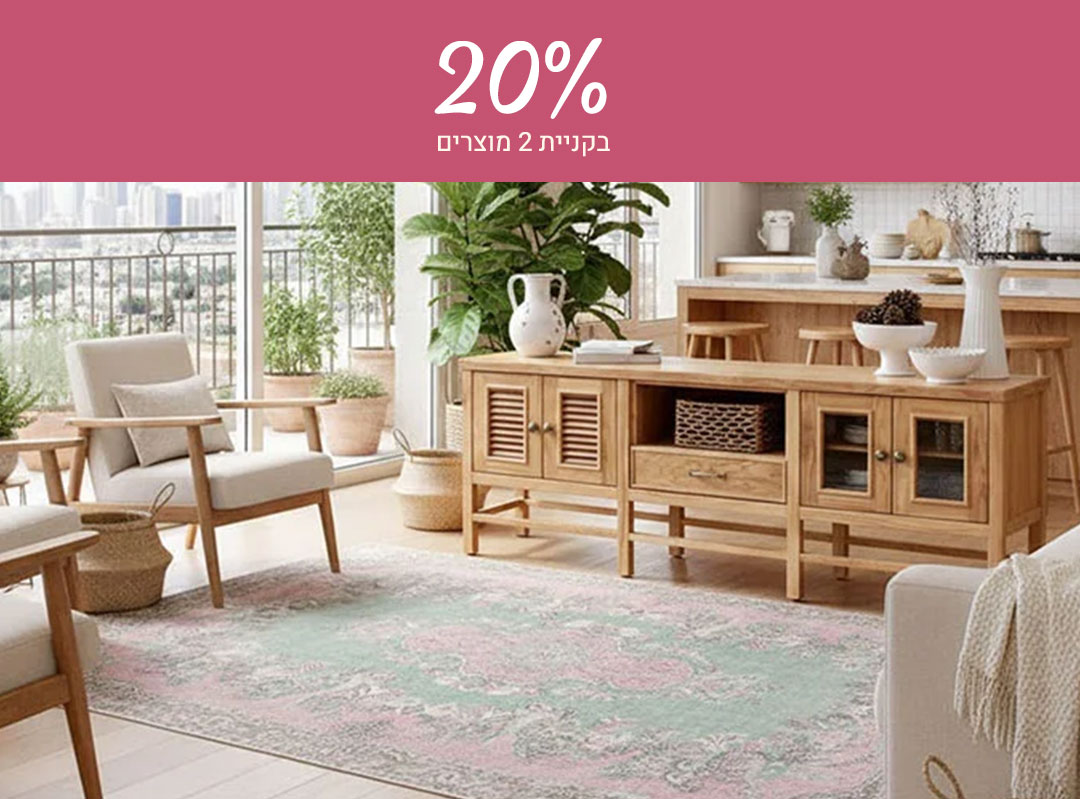שידות, מזנונים, ספריות ומאות גופי תאורה מעוצבים לכל חלל בבית, וגם שטיחים פרחוניים, מודרנים וצבעוניים במגוון עיצובים מהממים שישמחו את בני הבית, עכשיו בהנחות: 15% הנחה על פריט אחד, 20% על 2 פריטים, ו-25% הנחה על 3 פריטים ומעלה. כנסי לחנות האון ליין שלנו ומוזמנת גם להגיע לאולם התצוגה ולהתאהב מקרוב! מחכות לך ♥